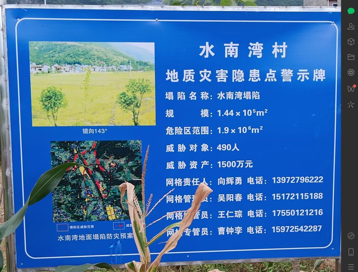 “竖了警示牌的地方都不敢耕种了,担心哪天又突然发生地陷,人掉下去起不来。”曹大庆指着稻田处的一块蓝色的警示牌介绍,那一块地每年都可能会发生塌陷,回填后也会有塌陷。在曹中基提供的多段视频中,该村最近两年发生数十次地面塌陷现象,最大的塌陷区域达数十平方米。