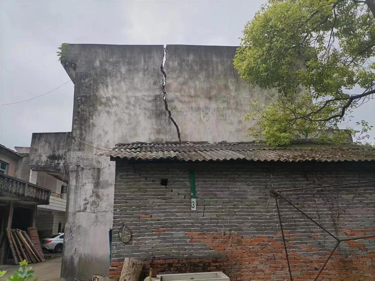 “这里是发生塌陷后填上的新土。”该村村民曹大庆介绍,几乎所有居民家中的墙体都发生了开裂,很多房子裂成了危房。在一栋两层楼前,极目新闻记者看到,一条裂口从楼顶一直延伸到一楼,裂缝可以伸进一个拳头。