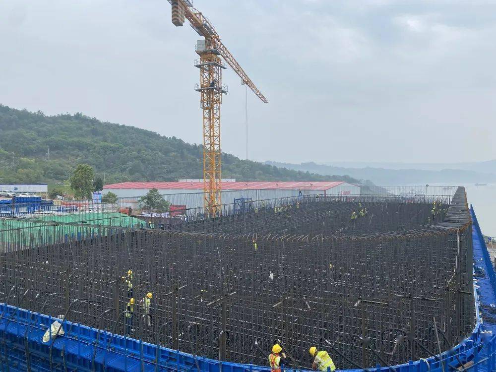 4月20日,渝万高铁石沱长江大桥5塔承台钢筋、冷却水管装置及承台模板加固。(通讯员:刘阳)
