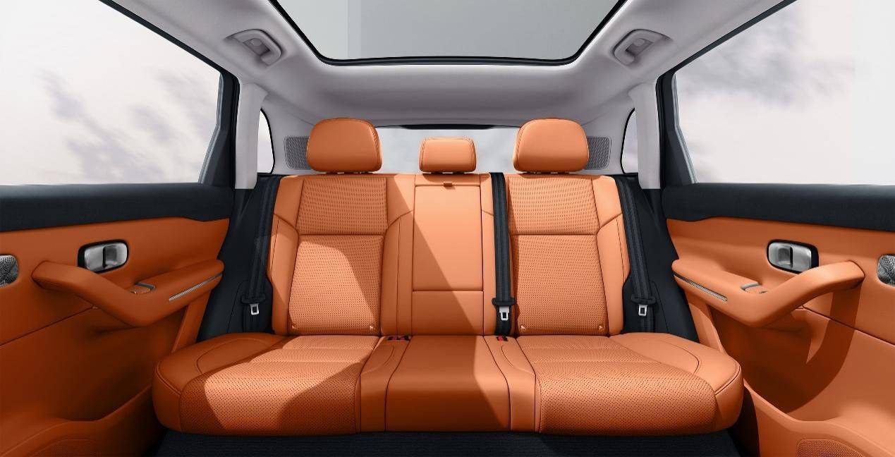 得益于超高得房率,零跑C10拥有同级领先的后排乘坐空间——腿部最大空间达到1050mm,头部最大空间达到1015mm,第二排坐垫长度达到514mm,后座靠背27°/32°两档可调,打造整车越级豪华大两居空间。