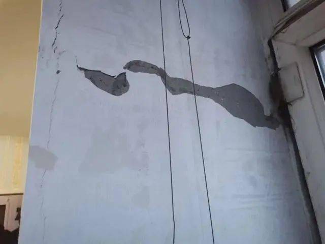 之后,陈女士发现家里的地板开始抖动,同时还出现了下沉,墙壁也出现了很多裂痕。此外,楼上很多住户的墙面也出现了裂痕。